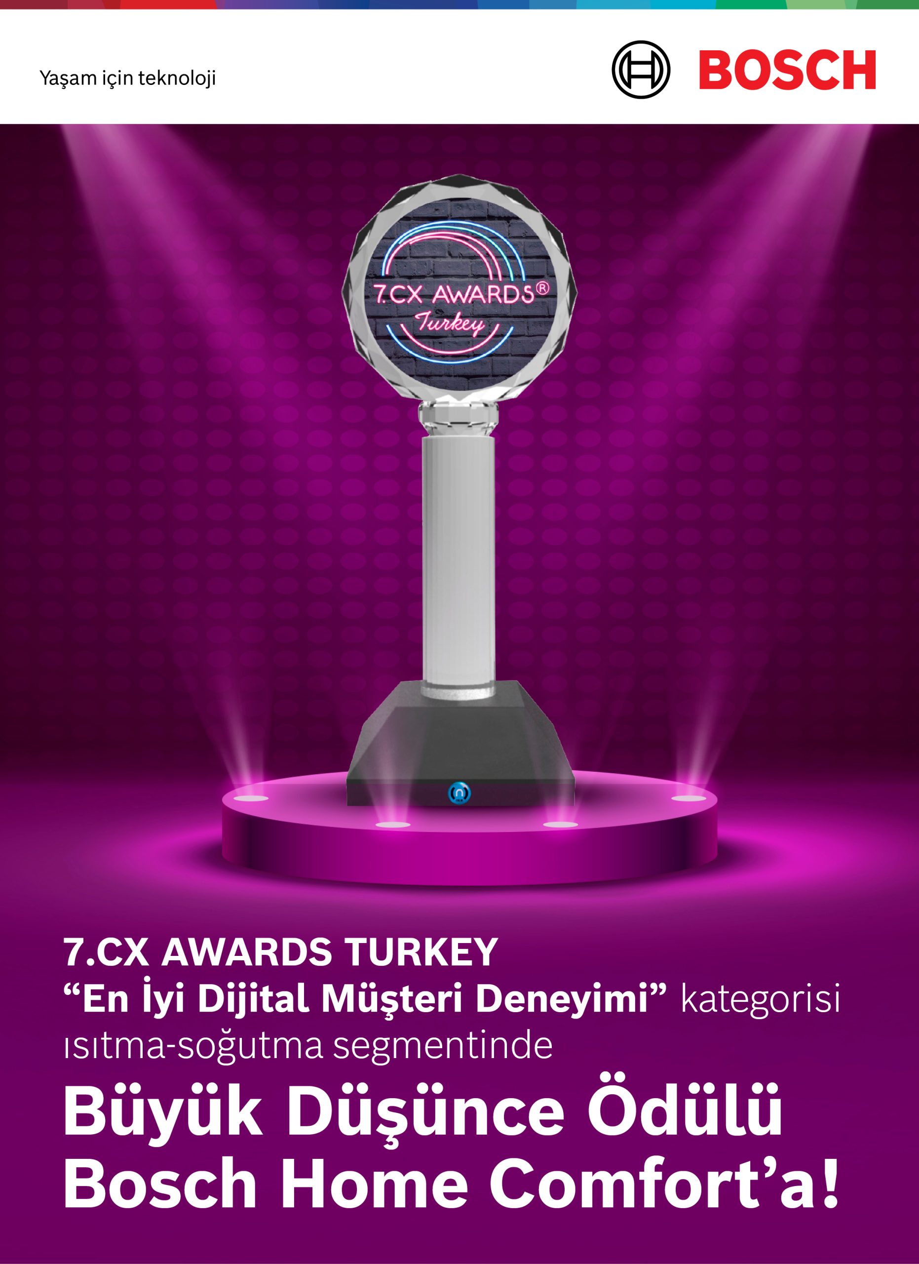 Isıtma-soğutma sektörünün lider markalarından Bosch Home Comfort, 7. CX Awards Turkey’de “En İyi Dijital Müşteri Deneyimi” kategorisinde Büyük Düşünce Ödülü’nü kazandı. Markanın “Isıtma Sistemi Seçim Programı” projesi, kullanıcı dostu arayüzü ve yenilikçi yaklaşımıyla jüri tarafından ödüle layık görüldü.