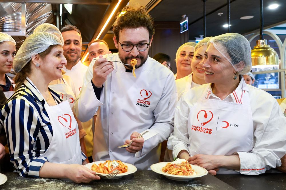 Türk Kızılay Genel Başkan Yardımcısı Emre Koç, depremin ilk gününden bu yana bölgede yalnızca ihtiyaçları karşılamaya değil, sosyal ve ekonomik iyileşmeyi desteklemeye de odaklandıklarını belirterek, “‘İyilikle Pişen Hayatlar’ projemizle kadınların mutfak becerilerini geliştirirken yemek yapmanın iyileştirici gücüyle birbirimize destek oluyoruz. Kadınları profesyonel eğitimle destekleyerek yeni istihdam imkânlarının kapılarını aralamayı amaçlıyoruz. Başta Danilo şefimiz olmak üzere programa katkı sunan tüm şeflerimize gönülden teşekkürlerimizi sunuyoruz.”